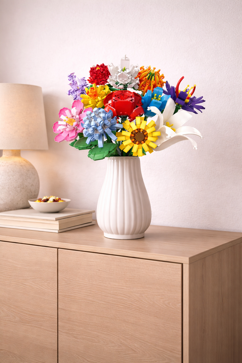 Deze levendige bloemen creëren een kleurrijk meesterwerk, waarbij elk detail met zorg is ontworpen voor een gedurfde, moderne uitstraling die elke ruimte verfrist.